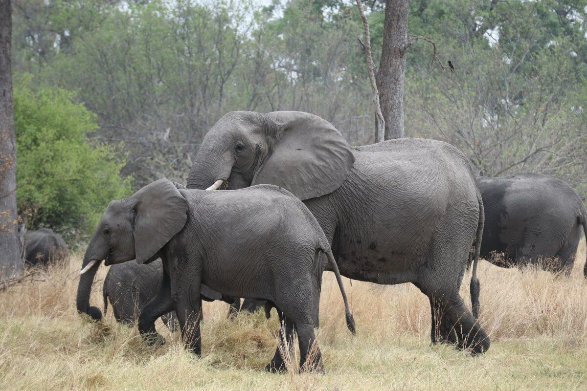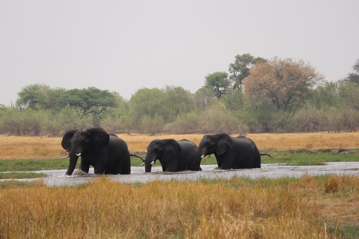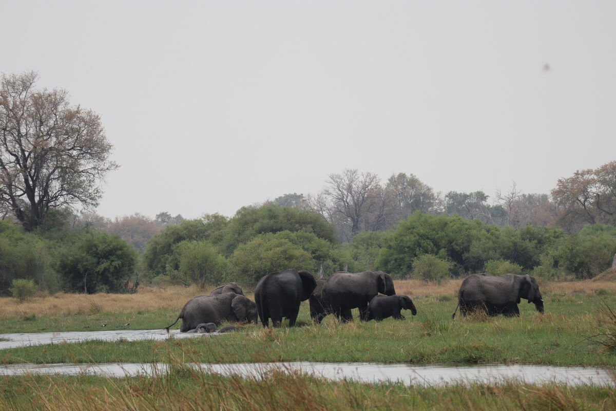 About 3km before Mababe we saw a herd of about 50 elephants. We waited a while watching one group split of and cross the water on the left. There were some little ones who had to almost walk completely underwater with just their trunks sticking out.